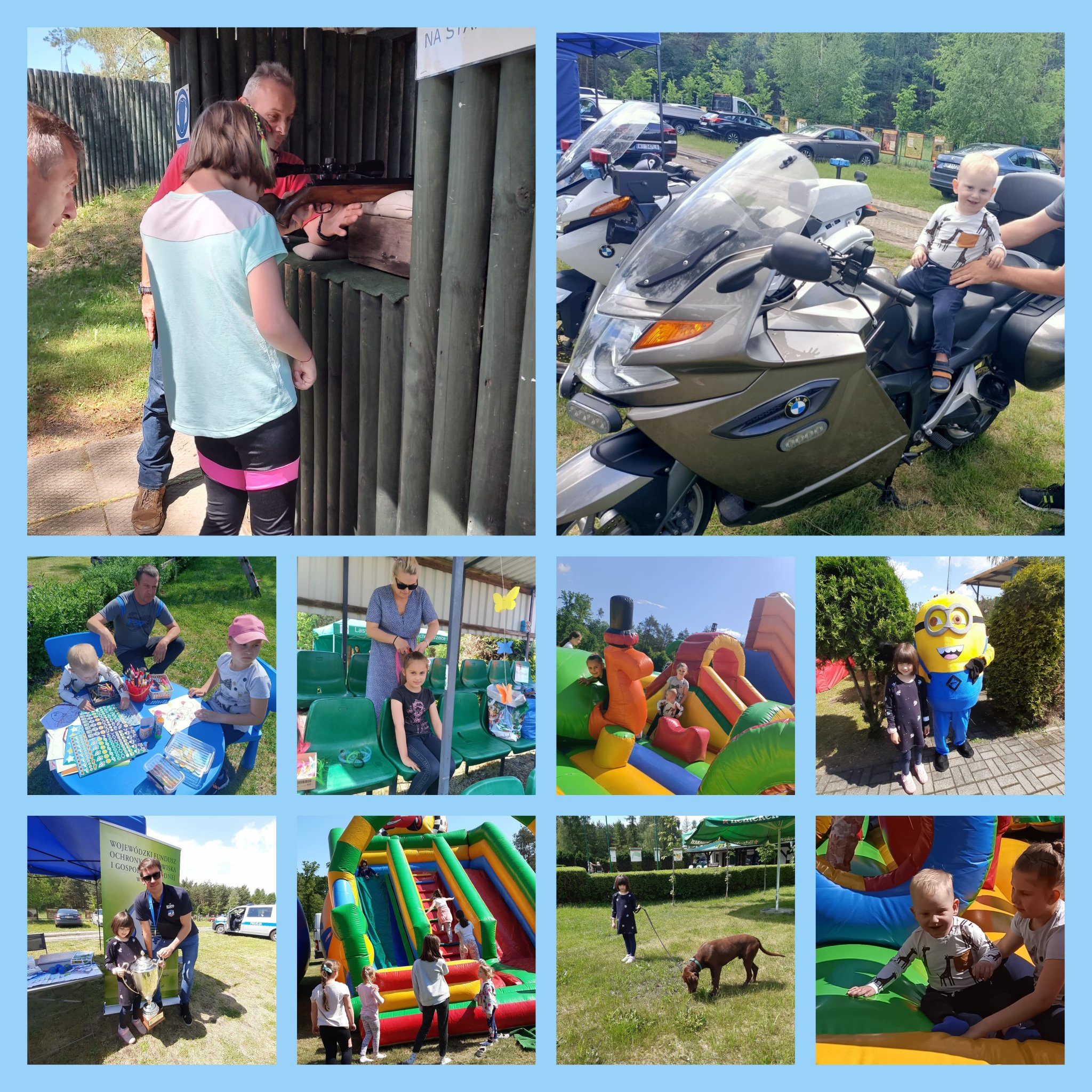 z wiatrówki i broni bocznego zapłonu, na których to dzieci spotykały się z instruktorem, który wyjaśniał im zasady prawidłowego trzymania broni oraz samego strzelania. Była to także okazja do wyjścia na spacer z psem myśliwskim. Był symulator jazdy. Można też było sobie zrobić zdjęcie z Pucharem Mistrzów Europy w siatkówce i reprezentantem drużyny Zaksy – Tomaszem Kalembką. Myśliwi, leśnicy z Lasów Państwowych oraz przedstawiciele Policji i Straży Pożarnej pokazywali dzieciom, jak wygląda ich praca i co takiego robią na co dzień. Dzieci mogły dowiedzieć się również, czym zajmuje się Narodowy Bank Polski czy Krajowa Izba Administracji Skarbowej. Dziękujemy Polski Związek Łowiecki – ZO Opole za zaproszenie! Niech radość i szczęście na twarzyczkach dzieci, będą największym podziękowaniem dla Państwa za tak cudownie spędzony czas!