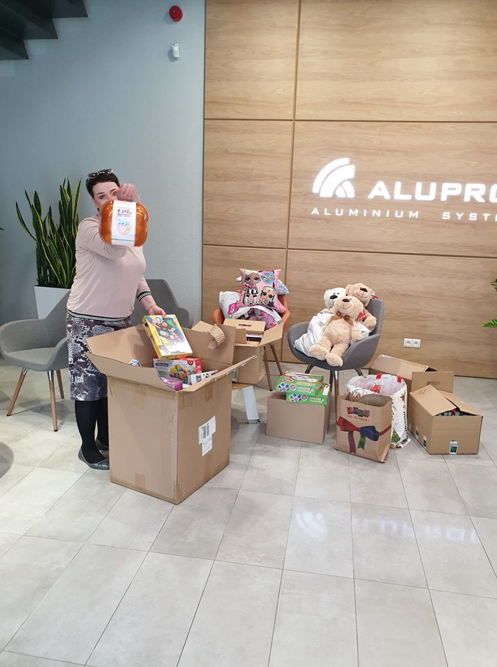 Dyrektora Pana Artura Kruszewskiego i Pracowników Firmy Aluprof S.A. w Opolu Grupa Kęty. Pani Joanna Romańska, pracownik firmy – cudowna, ciepła osoba, osobiście zaangażowała się w zakup zabawek i słodkości dla rodzeństwa naszych podopiecznych;