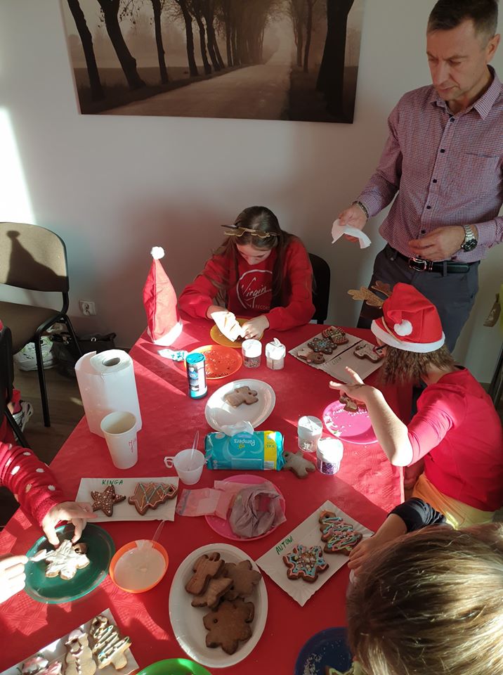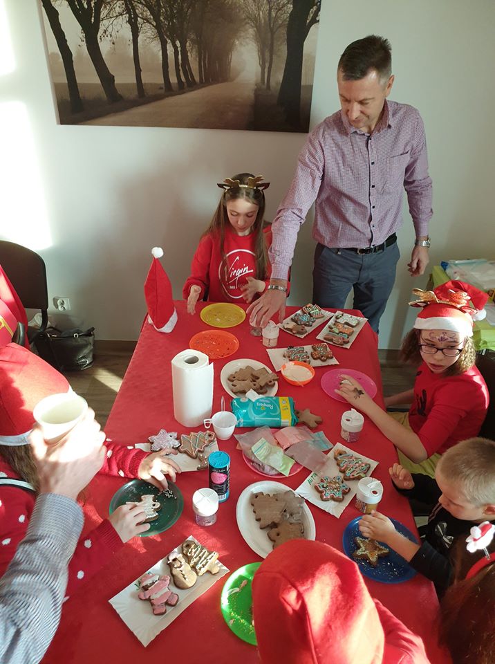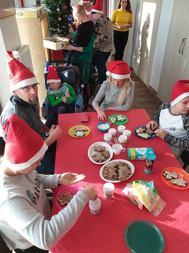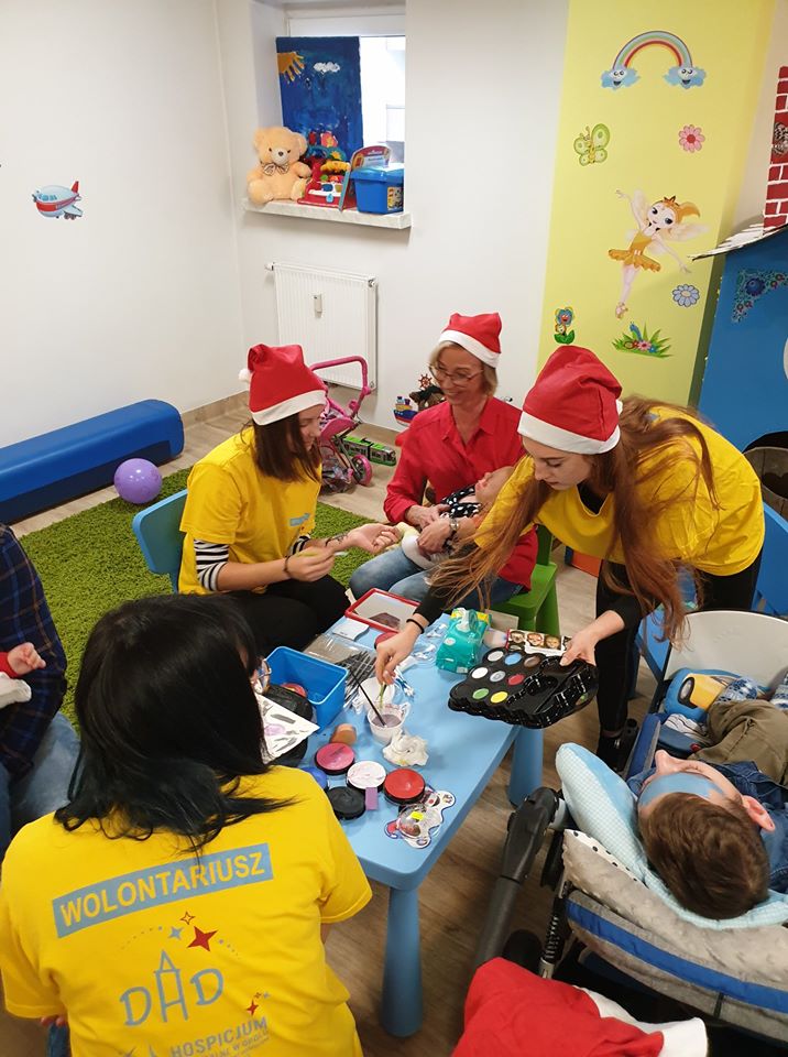 Cudowny, ciepły, dobry czas, pełen uśmiechów, radości, łez wzruszeń. To już szósty raz odbyło się mikołajkowe spotkanie w siedzibie Fundacji Domowe Hospicjum dla Dzieci w Opolu. Hospicjum ma pod opieką chore dzieci, ale dba o całą rodzinę. Mikołajkowe spotkanie dedykowane jest także rodzeństwu dziecka chorego, żeby wiedziało, że nie jest zapomniane i jest tak samo ważne. Wszystko to dzieje się od sześciu lat za sprawą Pani Grażyny Chamielec – Musz, która na co dzień pracuje w dziale żywienia medycznego Nutricii. W Nutricii działa „Fundacja Dobra Sieć”, która przeznacza pieniądze na inicjatywy zgłaszane przez swoich pracowników, dzięki temu Pani Grażyna zapewnia środki na zorganizowanie Mikołajek dla podopiecznych hospicjum. Było ubieranie choinki, malowanie buziek, ozdabianie pierniczków, malowanie aniołów z masy solnej – pomogła nam Pani Jolanta – nauczycielka PSP nr 2 w Opolu, kawa, słodki i pożywny poczęstunek. Kulminacyjnym punktem była wizyta św. Mikołaja, który rozdał prezenty ufundowane przez: