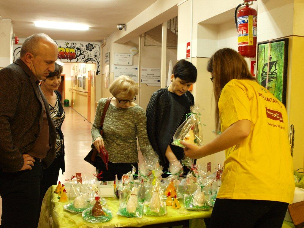 Wolontariusze sprzedawali w szkole własnoręcznie wykonane ozdoby świąteczne: pieczone z ciasta lukrowane baranki, mazurki, zajączki, ozdabiane cekinami wielkanocne jajka, filcowe kurki, świąteczne kartki. Rozdawali ulotki i zbierali pieniądze do skarbonki. Dochód z kiermaszu został przeznaczony na rzecz chorych dzieci z Domowego Hospicjum w Opolu.