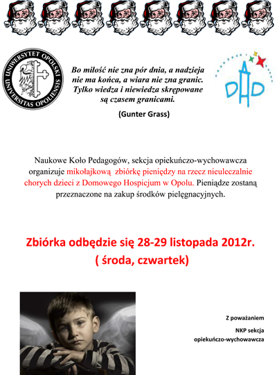 Organizatorem akcji było Naukowe Koło Pedagogów sekcja opiekuńczo- wychowawcza pod kierownictwem mgr Agnieszki Franczyk.