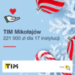 221 000 tysięcy złotych – taką kwotę firma TIM SA przekazała 17 organizacjom i instytucjom w ramach świątecznej akcji charytatywnej. Firma zrezygnowała z zakupu upominków świątecznych oraz druku kalendarzy książkowych dla swoich Klientów, a w zamian stworzyła wraz ze swoimi Dostawcami #TIMMikołajów.