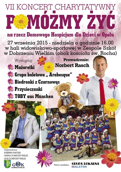 Koncert odbędzie się 27 września w hali widowiskowo – sportowej w Zespole Szkół w Dobrzeniu Wielkim.