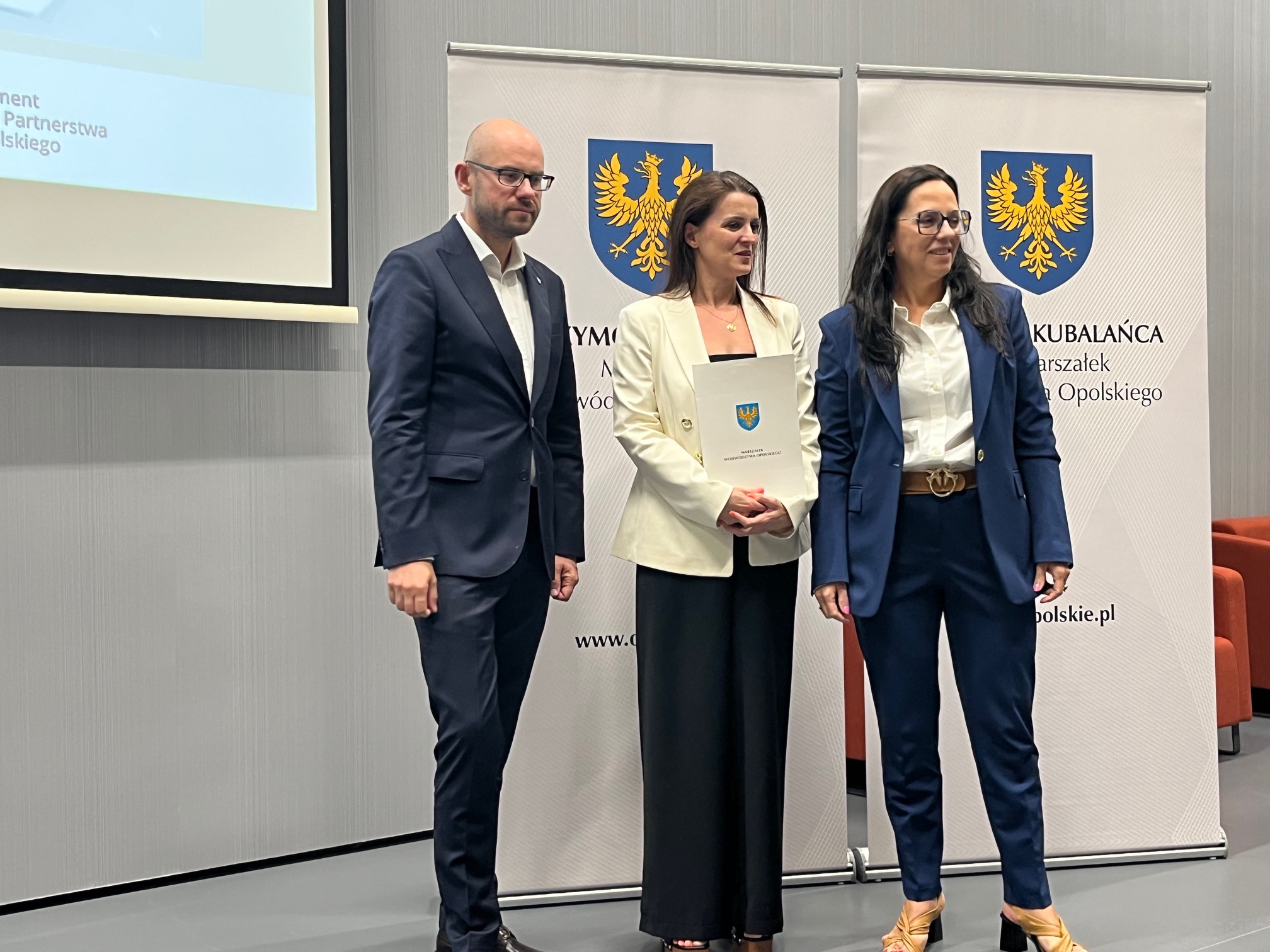 W lipcu tego roku odebraliśmy z rąk Pana Zbigniewa Kubalańca – Wicemarszałka Województwa Opolskiego oraz Pani Dyrektor Barbary Kamińskiej umowę na grant w wysokości 15 000 zł w ramach konkursu „NOWOCZESNA INFRASTRUKTURA DLA NGO W OPOLSKIM”.